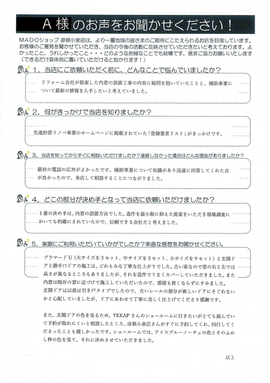 A様、ありがとうございました!